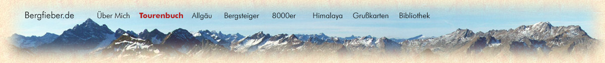 mein persönliches Tourenbuch Infos rund ums Allgäu berühmte Bergsteiger Bibliothek Biographisches ... zur Startseite! die Achttausender Himalaya Grußkarten