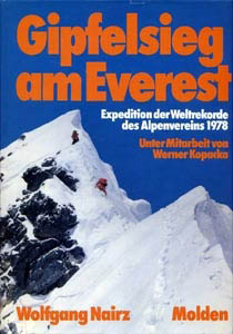 1978 | Die erste Österreichische Mount Everest Expedition, von Nairz geleitet, ist ausgesprochen erfolgreich: gemeinsam mit Horst Bergmann, Robert Schauer und Ang Phu gelingt am 3. Mai 1978 die erste österreichische Besteigung des höchsten Berges der Welt, des 8.848 m Hohen Mount Everest. Desweiteren erreichen Reinhold Messner und Peter Habeler als erste Menschen überhaupt den Gipfel ohne Zuhilfenahme von Flaschensauerstoff. Mit Reinhard Karl, der gemeinsam mit Oswald Oelz den Gipfel erreicht, ist auch der erste Deutsche (und "der erste Voralberger", O-Ton Oelz) am höchsten Punkt der Erde. | |
