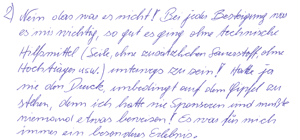 2. Bei der Besteigung des Mount Everest 2001 wurden Sie einem breiteren Publikum bekannt, als Sie den berühmten „Second Step“ am Nordostgrat als zweiter Bergsteiger frei und zudem als erster Alpinist on sight klettern konnten. War das sozusagen der alpinistische Höhepunkt in Ihrem Leben?