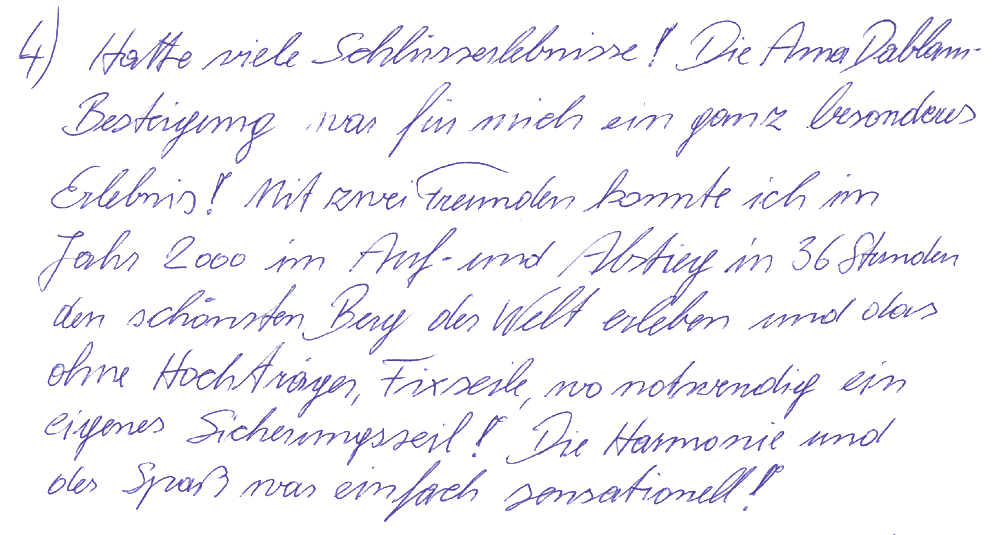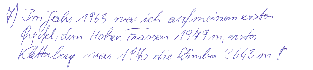 4. Viele Bergsteiger hatten in Ihrem Bergsteigerleben ein Schlüsselerlebnis, eine Tour, die das weitere alpine Leben prägte. Gibt es eine solche Tour bei Ihnen? Wenn ja, welche war das?