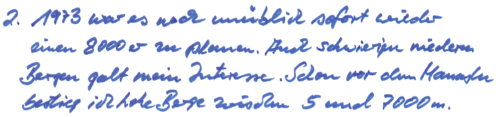 2. 1973 erreichten Sie mit einer Expedition unter der Leitung Ihres inzwischen verstorbenen Freundes Gerhard Schmatz Ihren ersten Achttausender, den Manaslu. Reifte dort Ihr Wunsch, weitere Achttausender zu besteigen? Es folgten ja noch 7 weitere Achttausender, bei einigen Touren war Ihre Frau Gaby dabei.