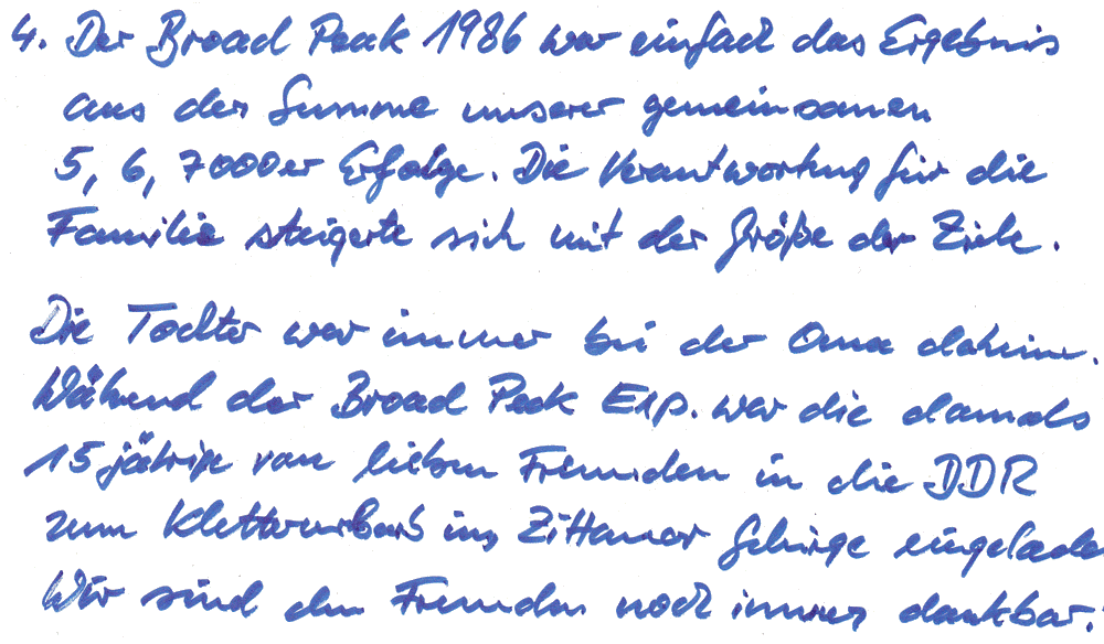 4. Drei Achttausender konnten Sie gemeinsam mit Ihrer Frau besteigen. Wie wichtig ist es Ihnen, auch mit Ihrer Frau oftmals „ ganz oben“ gestanden zu haben? Ist man vorsichtiger am Berg, wenn die eigene Ehefrau dabei ist?