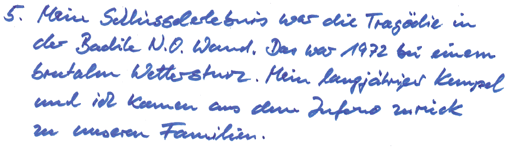 5. Bergsteiger haben in Ihrem Bergsteigerleben oftmals ein Schlüsselerlebnis, eine Tour, die das weitere alpine Leben prägte. Gibt es eine solche Tour bei Ihnen? Wenn ja, welche?