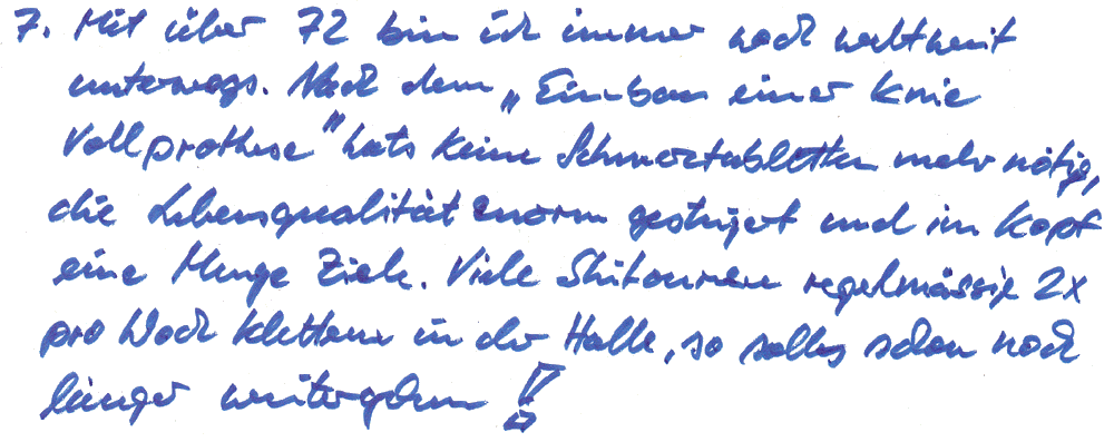 7. Mit zunehmendem Alter werden die Berge kleiner, so sagt man. Ein vielgereister Bergsteiger wie Sie hat sicher auch heute noch Pläne. Welchen sportlichen Wunsch möchten Sie sich – Sie sind 2011 siebzig Jahre geworden – noch erfüllen?