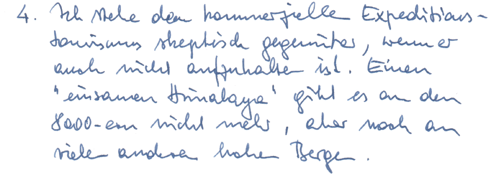 4. Als Sie die Weltberge angingen, waren zumeist nur wenige Teams am Berg. Heutzutage beklagen viele, dass der Massentourismus auch vor den 8000ern nicht halt macht. Wie stehen Sie diesen Entwicklungen gegenüber?