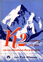 Fritz Wiessner: "K2 - Tragödien und Sieg am zweithöchsten Berg der Erde" Wichtiges Werk über die berühmte K2-Expedition 1939 von Fritz Wiessner, erschienen in nur einer kleinen Auflage (2000 Stück). Rother-Verlag (1.-3. Auflage 1955, es gibt keine weitere Auflage) |