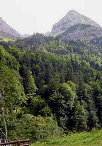 Bevor man die unbewirtete Pointhütte erreicht, biegt ein kleiner Wanderweg links von der asphaltierten Hauptstraße ab. Diesem folgt man, zunächst leicht absteigend...