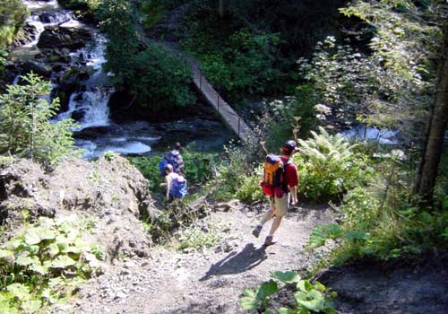 ... und erreicht dann alsbald den Bärgündelebach, den man auf einer Brücke überquert, um dann wieder, im Schatten der Bäume anzusteigen.