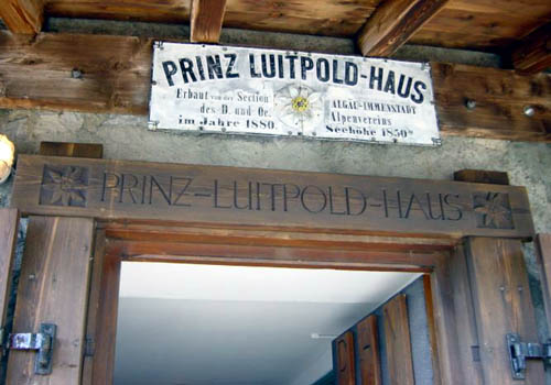 Der Eingang in die Hütte. Das DAV-Haus bietet 20 Betten und 260 Lager an, die derzeit (2003) für DAV-Mitglieder 7,50 Euro bzw. 5,50 Euro kosten. Nicht-Mitglieder kosten exakt das Doppelte.