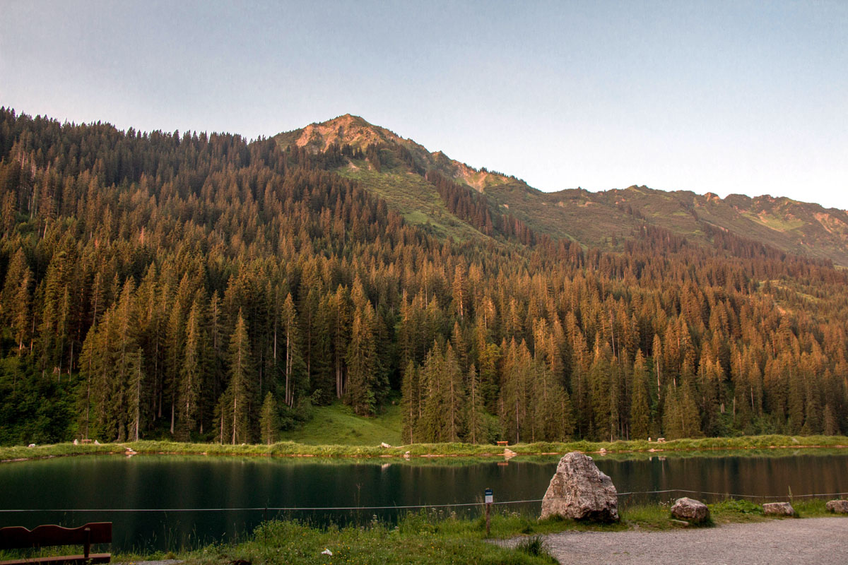 häufiger den Urlaub im Kleinwalsertal verbringen, angetan. Ein markanter wuchtiger Klotz als Außenposten des Allgäus, eher schon dem Bregenzerwald zuzurechnen. Allerdings führt eine Seilbahn auf den schönen Aussichtsgipfel. Heißt: an schönen Tagen wird es wahrscheinlich frühzeitig voll auf dem leicht zu erreichenden Gipfel. Heißt für mich: am besten vor der ersten Bahn auf dem Gipfel sein, was natürlich bei dem langen Anmarsch durchs Schwarzwassertal einen frühen Start bedeutet. Laut Wegweiser sind es ab Auenhütte bis zur Schwarzwasserhütte 2 Gehstunden und ab dort nochmals 3 Gehstunden bis zum Gipfel. Das muss schneller gehen ;-)
