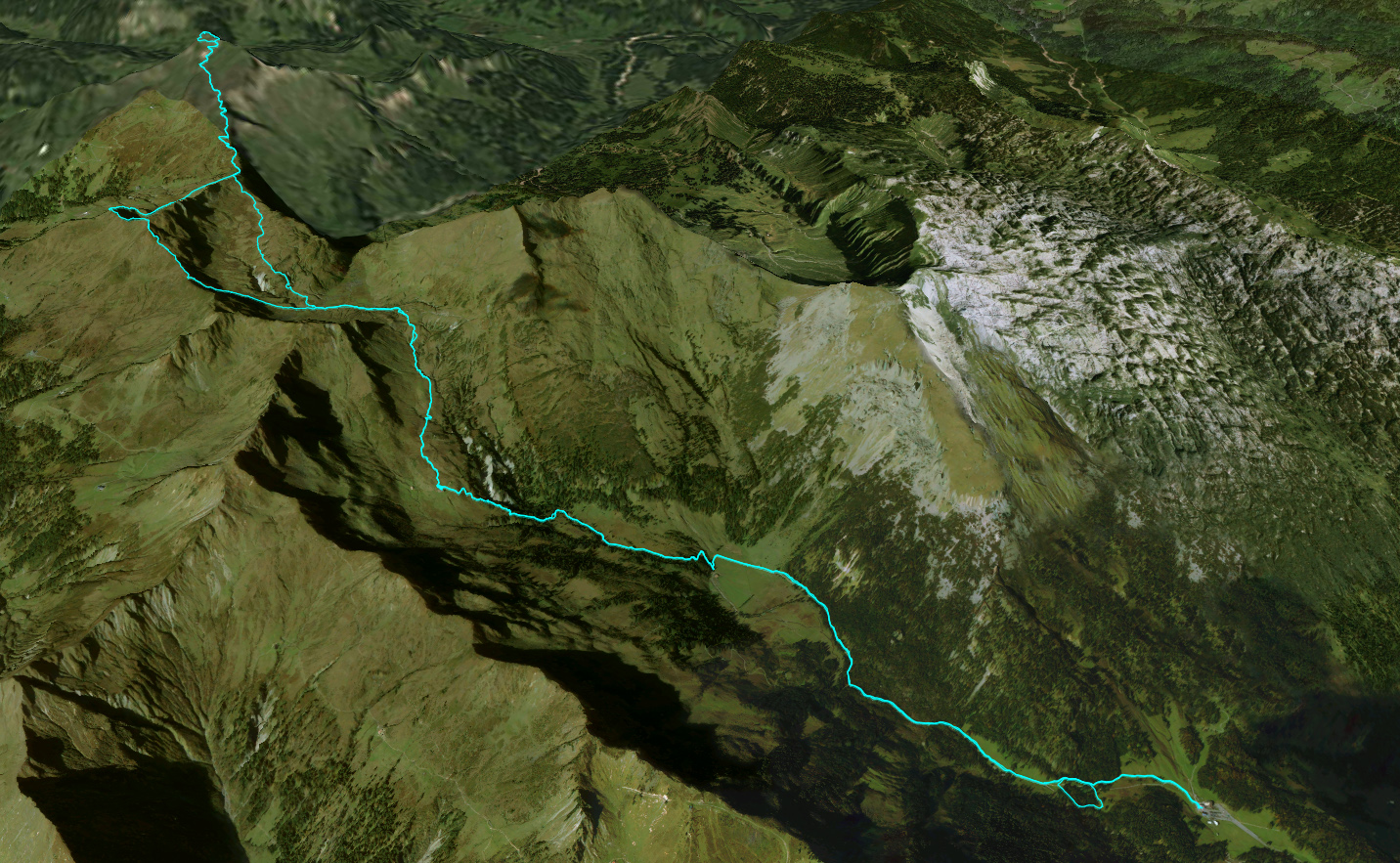 Landschaftlicher schöner Anstieg durchs Schwarzwassertal. Der Falzer Kopf ist wahrscheinlich zumeist relatib ruhig, der Diedamskopf wird mit seiner Seilbahn und der breiten "Wanderautobahn" im oberen Teil bei Schönwetter und Bahnbetrieb sicher ordentlich voll - da habe ich mit meinem zeitigen Start Glück gehabt! Eine schöne Aussicht hat man von beiden Gipfeln, die ja in der Höhe auch nur um rund 100 m differieren. |