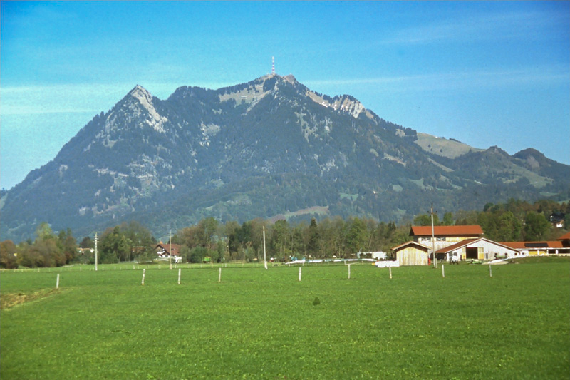 Um 6 Uhr stehe ich auf, mache mich startklar und packe den Rucksack und kann gegen kurz nach 7 Uhr von unserem Flitterquartier in Hindelang, dem Gästehaus Stich, Richtung Sonthofen starten. Ein herrlicher Blick wird mir geboten: die morgendlich Sonne bestrahlt die Nagelfluhkette hinter Sonthofen, als ich auf der Hauptstraße gen Osten düse. In Sonthofen fahre ich geradeaus und biege dann rechts Richtung Burgberg. Über die Felder abseits der Stadt erreiche ich das kleine Dorf Burgberg (751m) und folge dann der Fußwegbeschilderung "Grünten". Auf einer breiten Fahrstraße kann man dann bis zum Gasthof Alpenblick die Straße benutzen. Doch schon ein Stück unterhalb, an der Weiher-Alpe (ca. 920m) kann man parken (nur begrenzt Parkmöglichkeit!) und von hier sogleich über die Wiesen ansteigen. So kann ich ab hier um 7:40 Uhr Richtung Grünten starten.
