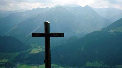 Das Gipfelkreuz ist etwas unterhalb des höchsten Punktes angebracht, weil