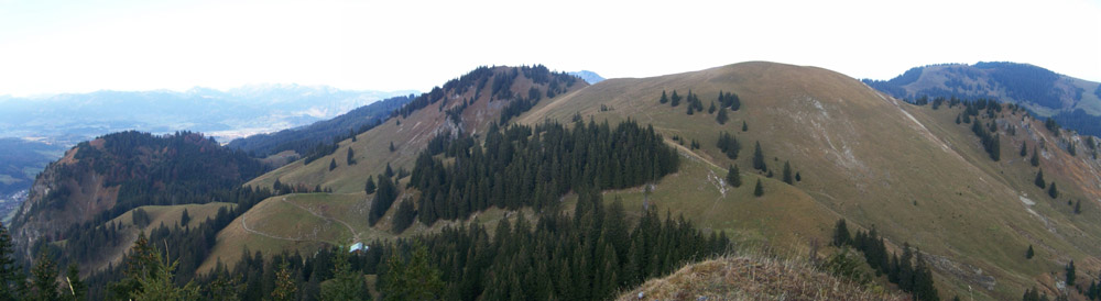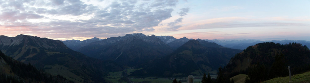 Panorama vom Iseler übers Ostrachtal hinweg bis zum "Kleinen" Hirschberg.