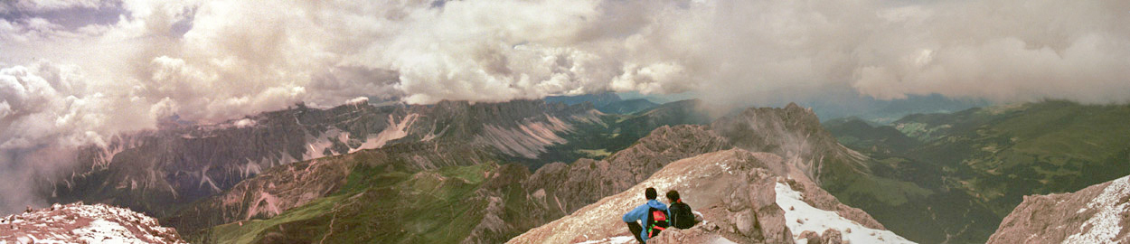 bescheidenes Gipfelpanorama in Richtung Geislerspitzen.