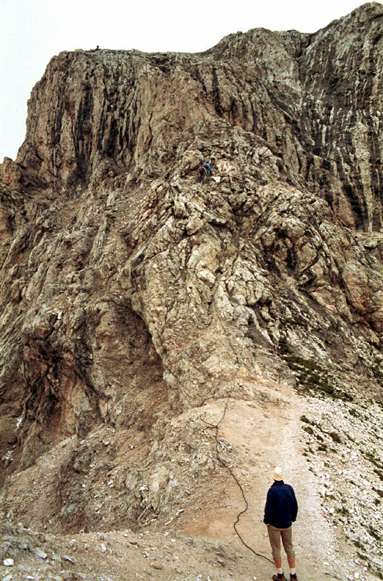 Drahtseile den Weg durch den steilen Fels weisen. Nur eine Stelle verlangt