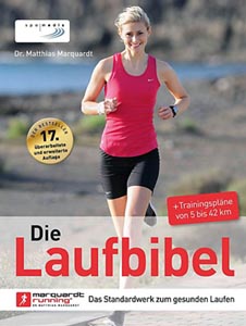 Marquardt, Dr. Matthias: "Die Laufbibel" Hardcover, 544 Seiten, ISBN 978-3-95590-130-1 "Laufbibel" - wieder ein Buch, das eine "Bibel" beinhaltet. Das schürt hohe Erwartungen. Und diese werden, um es gleich vorneweg zu sagen, nicht enttäuscht: Laufen ist "die" Ausdauersportart, so scheint es. Viele Läufer legen großen Wert auf ein gesundes Herzkreislauf-Training, doch wer eine Zeit lang trainiert, möchte vielleicht auch mal bei einem der zahllosen Wettkämpfe an den Start gehen. Egal, ob über 5 km oder, mit mehr Erfahrung, die berühmten 42,195 km der Marathondistanz. Fazit: man merkt bei der Lektüre, welchen Erfahrungsschatz und welche Begeisterung Dr. Marquardt in sein Buchprojekt eingebracht hat. Hierbei legt Dr. Marquardt ein Konzept vor, dass Verletzungen minimiert und die Basis für ein ganzheitliches & gesundes Lauftraining ist. Wer also an einem "rundum-Sorglospaket" in Sachen Laufbuch interessiert ist, sollte diese "Bibel" kaufen! |